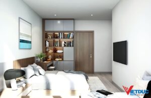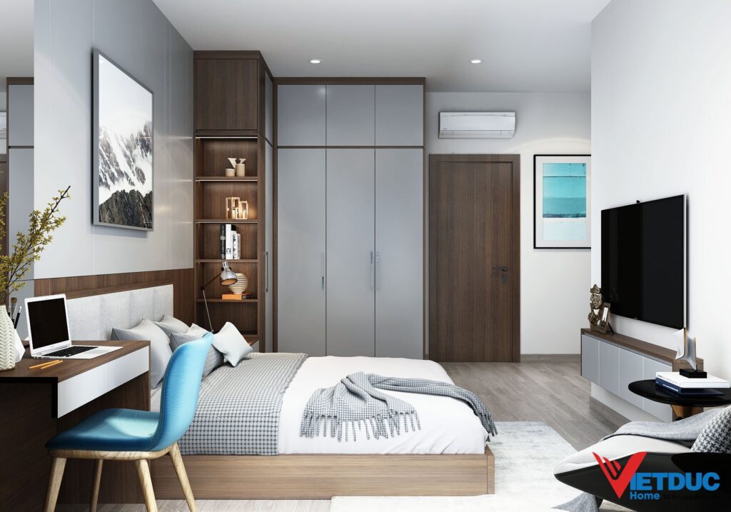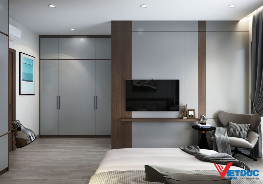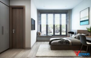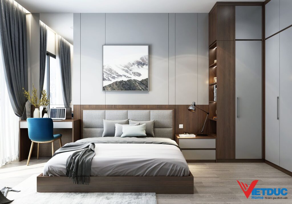 Nội thất gỗ công nghiệp màu kem nhạt của gỗ sồi trắng còn giúp tăng thêm sự ấm áp cho không gian ngủ và làm việc. Với gam màu hạt dẻ trầm ấm, không gian này trở nên dễ chịu hơn, giúp cho người sử dụng cảm thấy thoải mái và thư giãn hơn sau một ngày làm việc mệt mỏi.