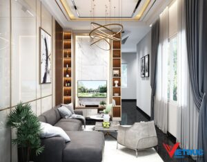 Với mong muốn tạo ra một không gian sống đẳng cấp, anh Tiễn (Q.9) đã quyết định chọn thiết kế tổ ấm với phong cách Tây. Đây là một trong những xu hướng thiết kế nội thất đang được ưa chuộng hiện nay, bởi sự kết hợp hoàn hảo giữa sự tinh tế, hiện đại của công nghệ vật liệu và sự sang trọng, ấm áp – mang đến một tác phẩm nghệ thuật kiến trúc đích thực.
