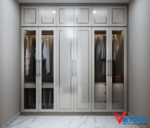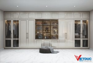 Sự chú trọng đến cảm giác thoải mái, ấm áp và dịu nhẹ thể hiện rõ qua việc sử dụng nội thất gỗ công nghiệp màu kem Tây phủ acrylic sáng bóng cùng với đường kẻ chỉ tinh tế trên nội thất. Phong cách thiết kế độc đáo được tạo nên từ sự kết hợp hài hòa giữa màu sắc và chi tiết tinh tế.