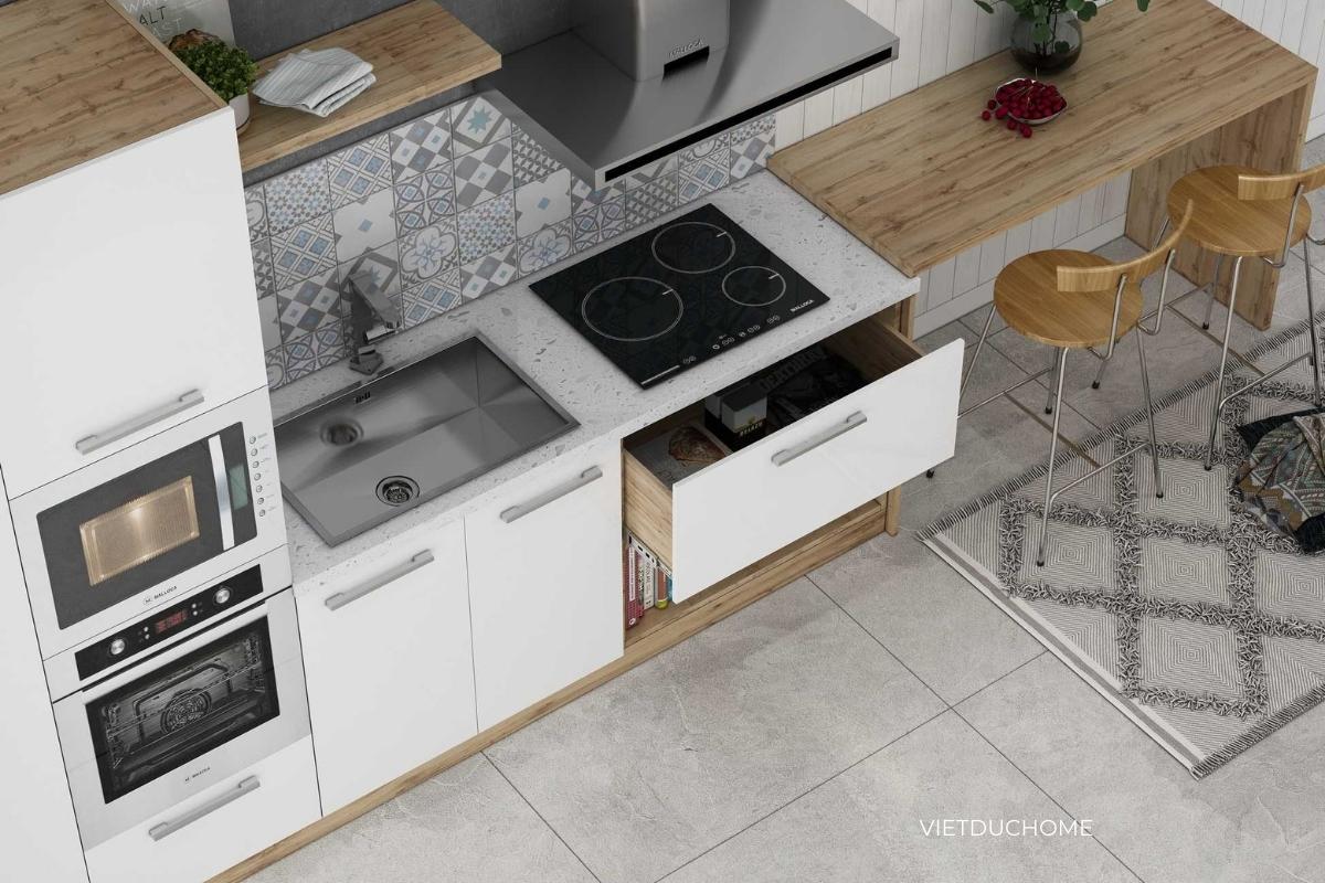 | Kích thước tủ bếp dưới | Rộng 1850 x Sâu 580 x Cao 850 |